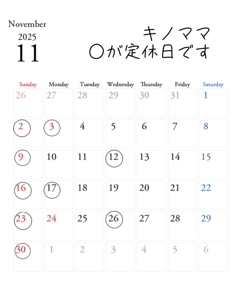 11月定休日